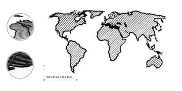 Reis ut i verden med det majestetiske LINE-verdenskartet. Et trebilde på veggen betyr noe helt annet - spesielt hvis det har form av et verdenskart. LINE-kartet er et enkelt og sofistikert verdenskart der alle kontinenter er fylt med enkle, men visuelt tiltalende linjer som skaper en unik 3D-effekt.